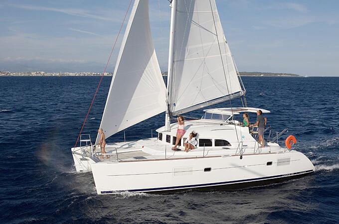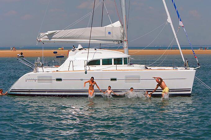Катамаран значительно шире яхты. Его конструкция такова, что между двумя корпусами разместился просторный салон, а в передней части судна натянута сеть для приема солнечных ванн. Лежа на сетке во время движения катамарана, испытываешь потрясающе релаксирующие ощущения.