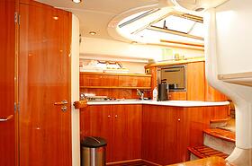 На великолепно оборудованном камбузе есть холодильник, газовая плита, печь, раковина и кофейный аппарат. Гости будут обеспечены посудой и минеральной водой. На борту есть электросеть в 220V и мощностью 9 kW.