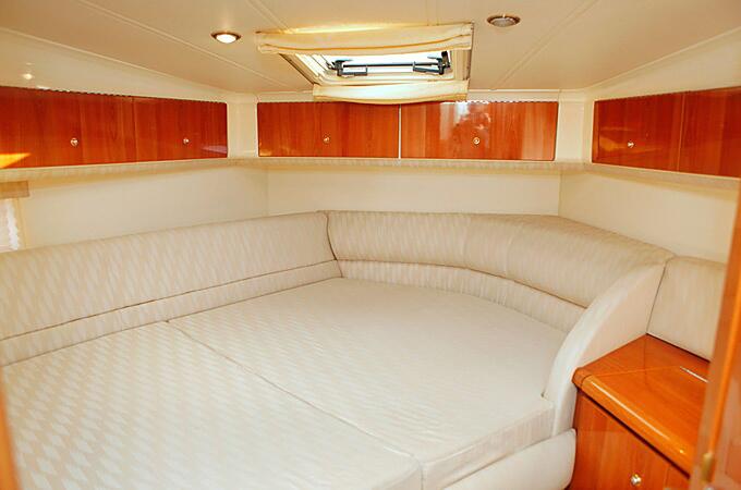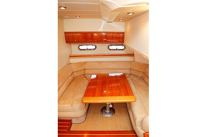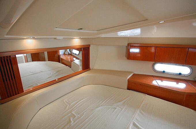 На яхте удобный, светлый салон с элегантной отделкой из лакированного дерева, две 2-местные каюты со своим туалетом (WC) и душем, камбуз (кухня). Еще двое гостей могут разместиться на ночь в салоне, разложив диван. Гостей обеспечат спальным бельем и полотенцами.