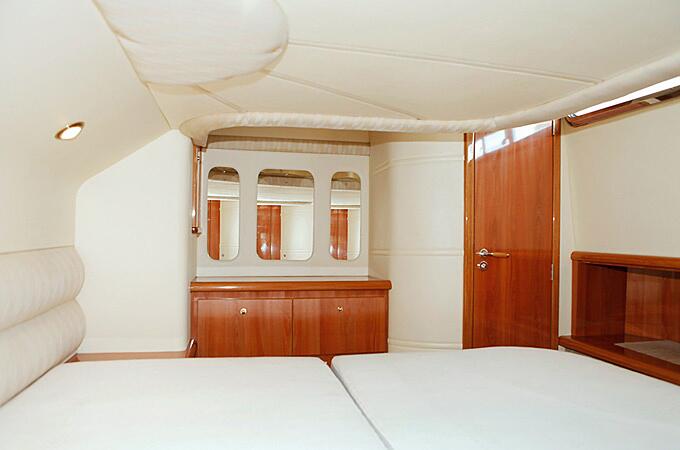 Комфортно на Sealine F43 разместятся 6 гостей. Максимальное количество – 12 человек. В салоне моторной яхты совсем не стесненно будут чувствовать себя 8 человек. На верхней палубе идеальное количество гостей – 6, а во время загара на солнце – 2 + 2 человека. Для длительных круизов на яхте есть 6 спальных мест – по два в каютах и салоне.