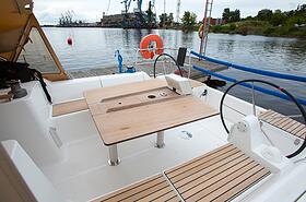 Производители смогли совместить комфорт с великолепными ходовыми качествами, что является отличительной особенностью яхт Dufour. Судно свежее, замечательно ухоженное с современными элементами такелажа, навигационным оборудованием, просторным кокпитом и отделкой салона из красного дерева.