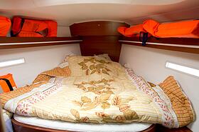 Во время дальних круизов гости могут разместиться в 3 каютах. Еще два спальных места предусмотрены в салоне. Таким образом, всего на яхте могут ночевать 8 гостей.