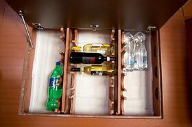 Для удобства гостей имеется два туалета с душем, электросеть в 220V (2,8kW), аудиосистема, “винный погреб”, автономное отопление, а также все необходимое для “наведения марафета” перед важным мероприятием, например, свадебной фотосессией на яхте.