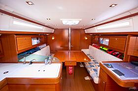 Lība в мире аренды яхт представляет известный французский бренд Dufour. Яхта построена в 2010 году, совсем свежая, хорошо ухоженная, выглядит современно с очень продуманным и рациональным обустройством салона и кокпита.